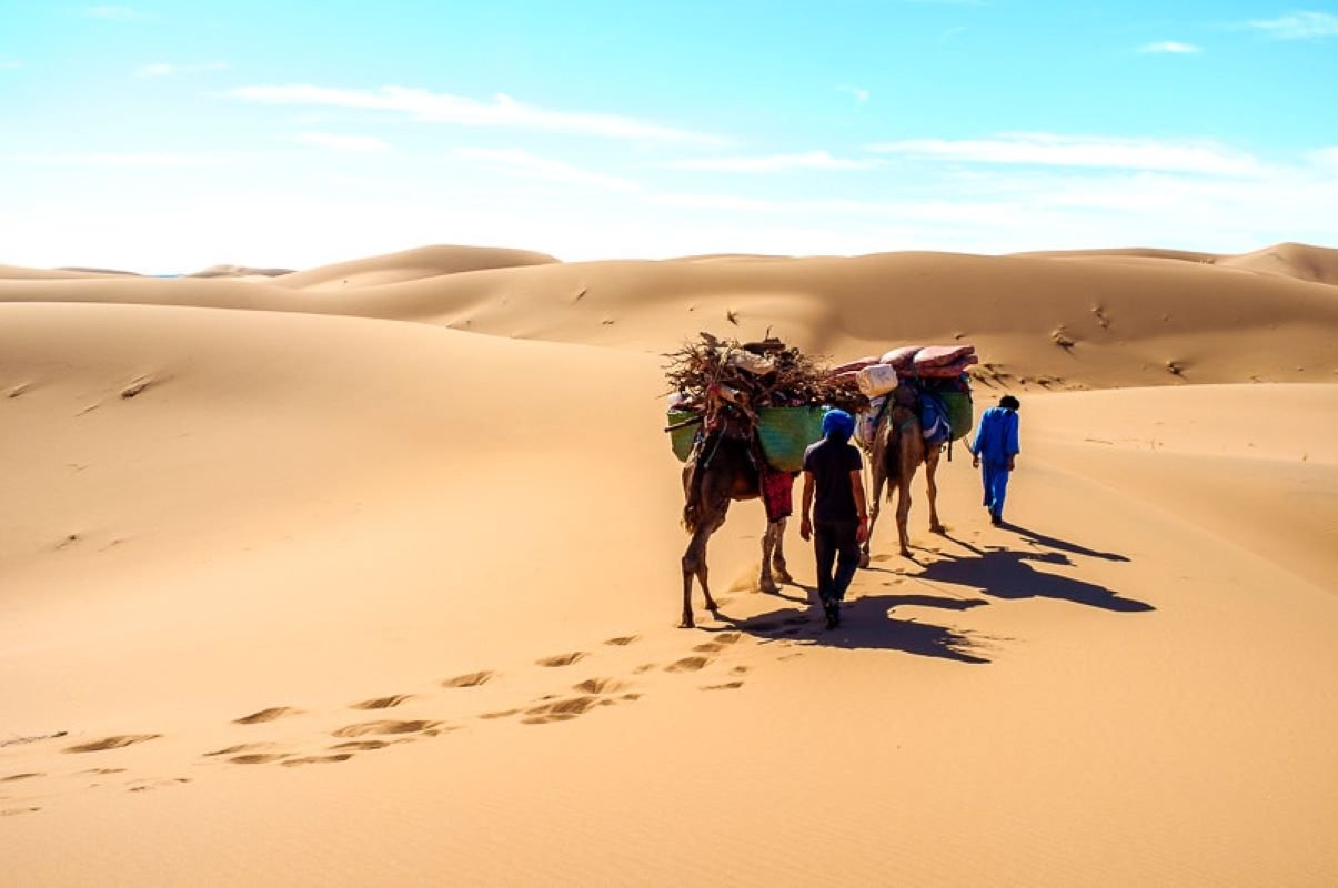 What is the accommodation like, particularly the Sahara desert camps?