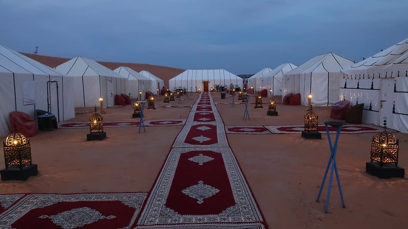 What is the accommodation like, particularly the Sahara desert camps?